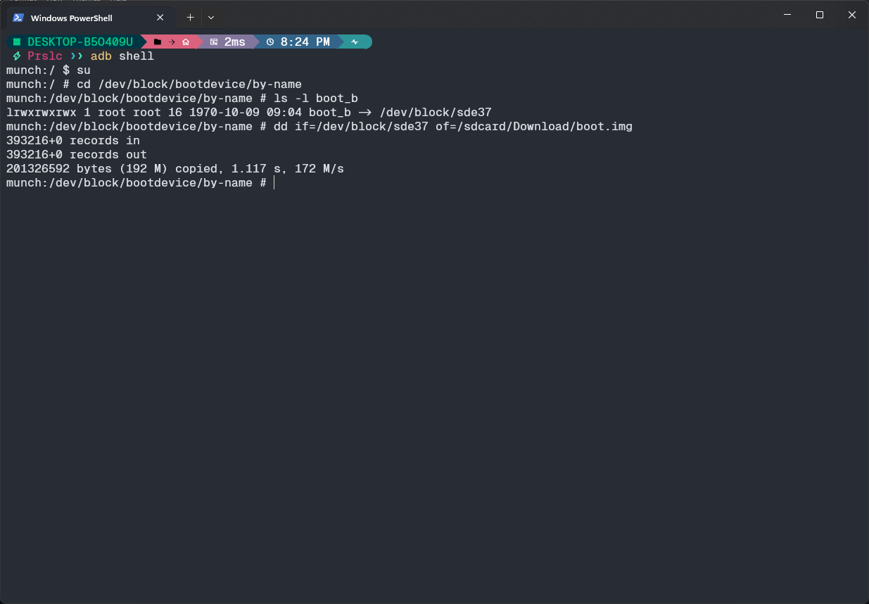 ls -l 分区名查看地址,如果是非AB分区设备使用ls -l boot就可以了,如果是AB分区的设备需要使用ls -l boot_目前所在的分区 - 看boot箭头指向的路径,比如我这里的路径是/dev/block/sde37 ,那么我就使用